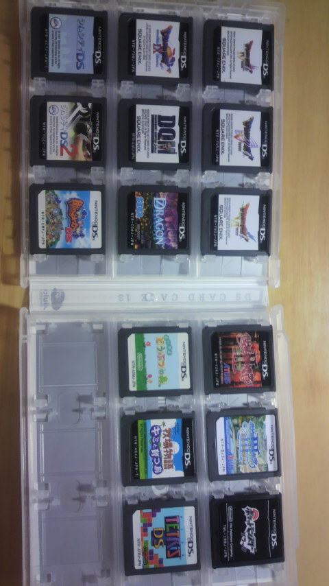 (*^ー^)ノ♪ 中身はこんな感じbDSのソフトを買った時と同じサイズのケースだから、使いやすいしいっぱい入っていい感じちゃんとクリアしてないソフトが結構あるけどポケモン黒が楽しすぎて放置し続ける予感><就職活動中なのにいったいなにをやってるんだか…orz